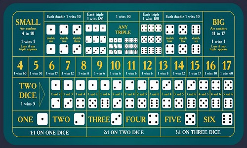 다른 말로는 식보라 불리며 플레이어들은 50% 확률의 홀수 또는 짝수, 빅 또는 스몰에 주로 베팅하며, 그 밖에도 특정 숫자, 주사위의 합계, 같은 숫자에 베팅할 수 있습니다.
